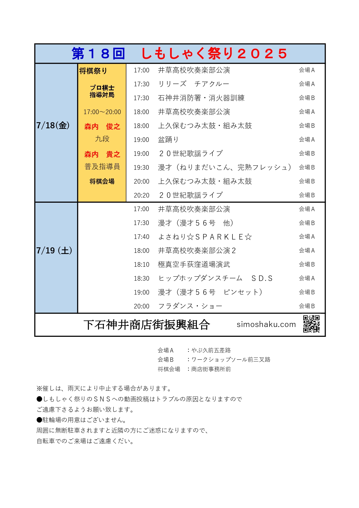 第18回 しもしゃく夏祭り 2025 プログラム詳細